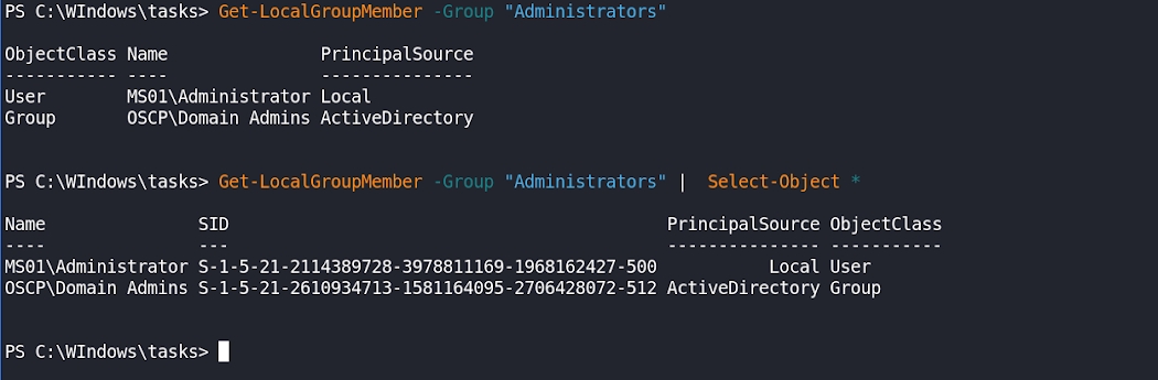 Get-LocalGroupMember -Group "Administrators" | Select-Object *