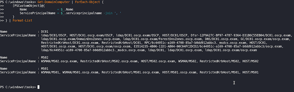 Get-DomainUser -LDAPFilter "Description=*built*" | Select name,DescriptionGet-DomainComputer